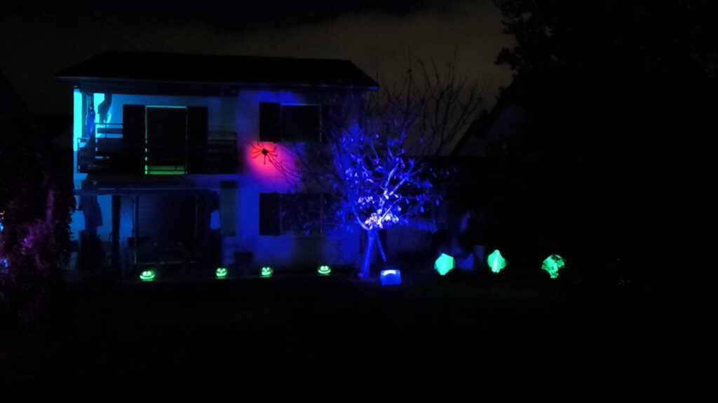 Pour Halloween et Noël, on a animé le jardin comme l’année passée…